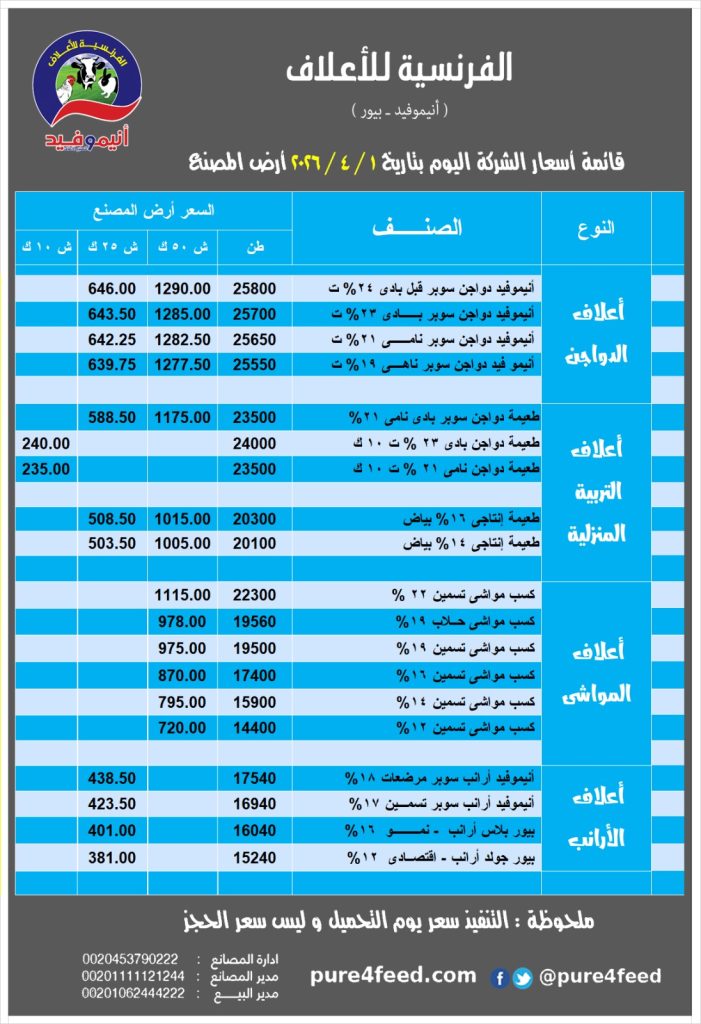 اسعار الاعلاف اليوم لشركه الفرنسيه للاعلاف ..